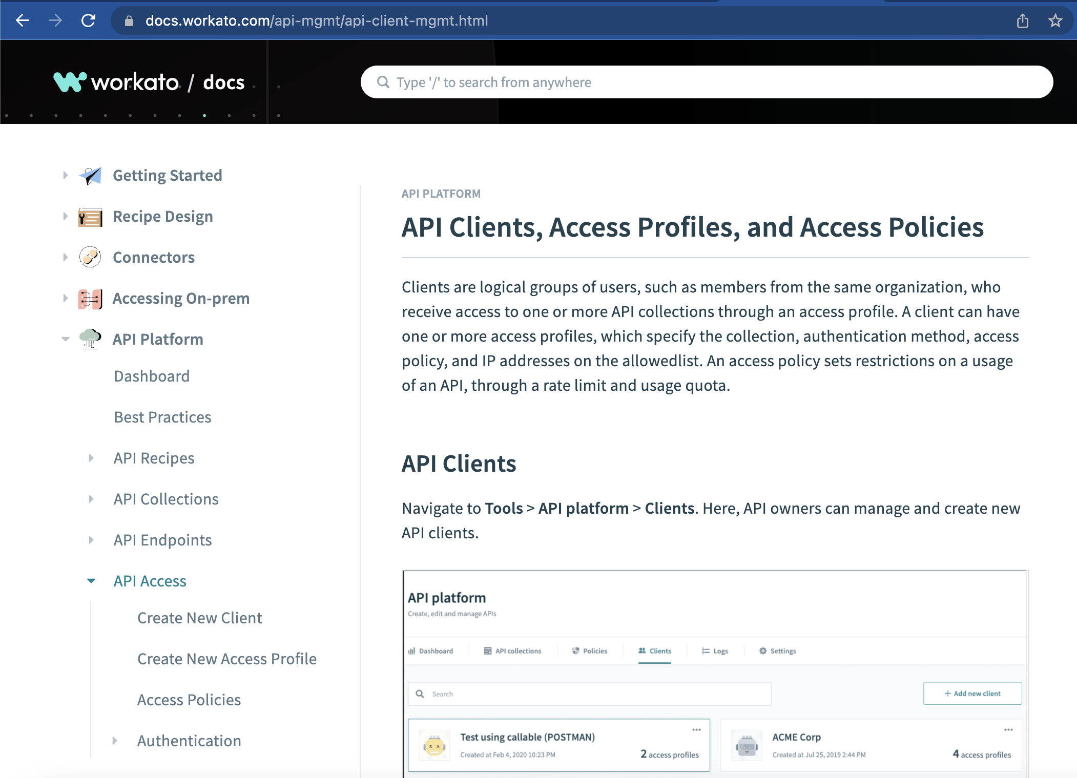 8) For the Client, create an access profile. There are choices here for how to authenticate. I chose the easiest, to let RIH generate me a token to use in my calls