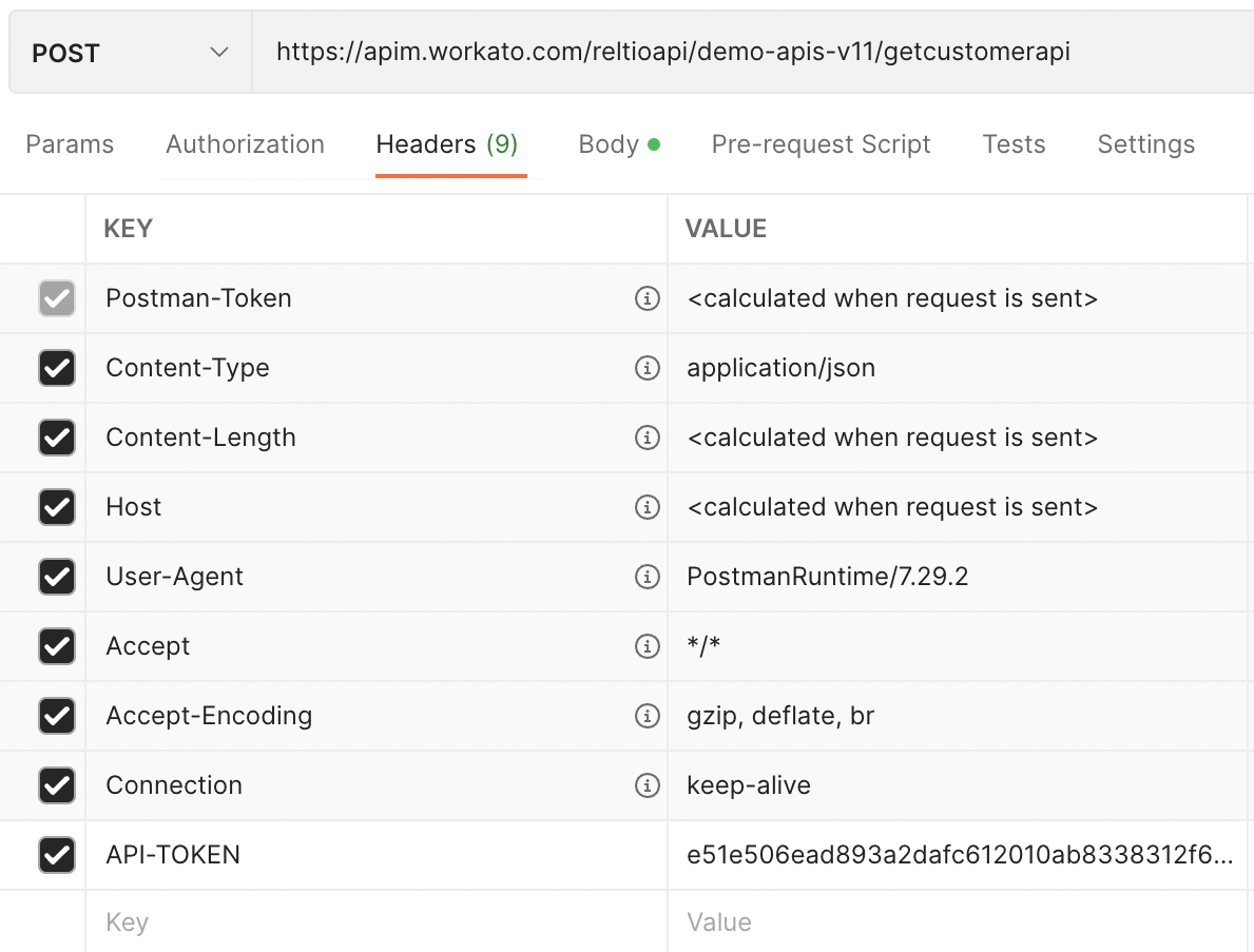 10) Test. Here's my Postman example. Note the additional Header with API-TOKEN, and the value copied from step 8.