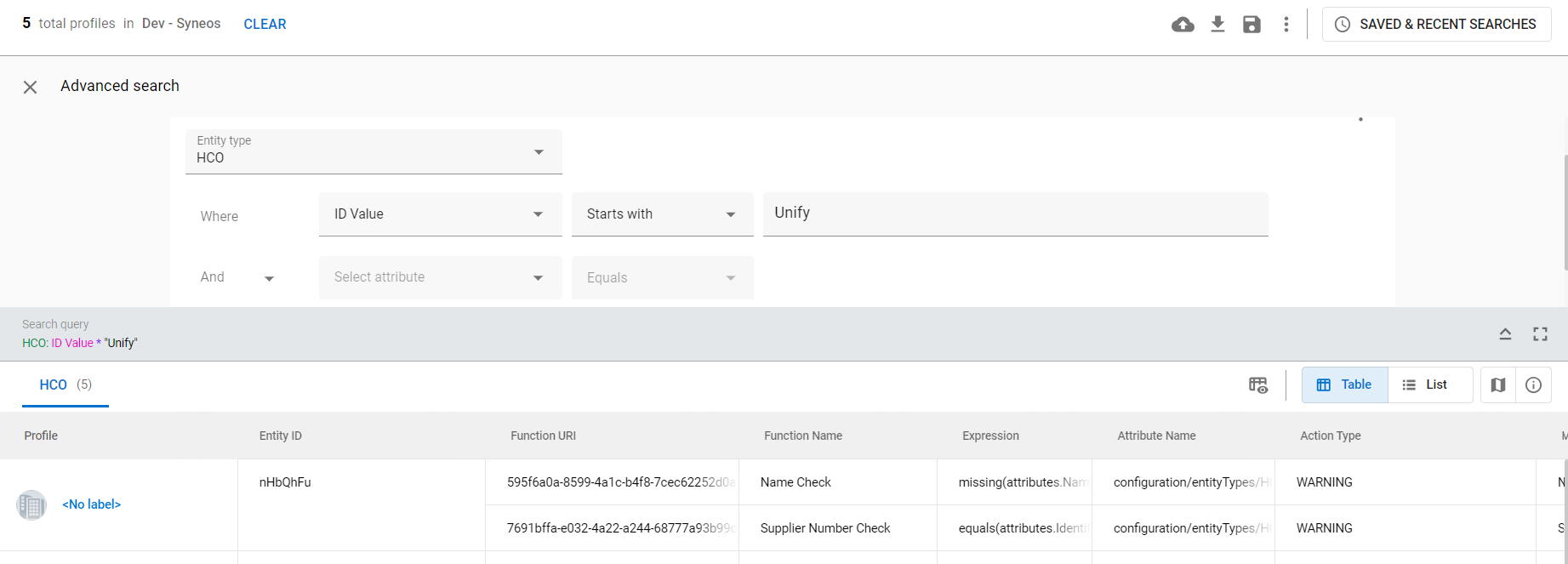 We have created validations functions and multiple records caught by the same and they are showing the Validation Function messages in UI as we have implemented .Now when we wanted to search those records based on the attributes related to Validation Function (like Attribute Validations ,Action Type etc.) ,it is not returning any search results like below :-
