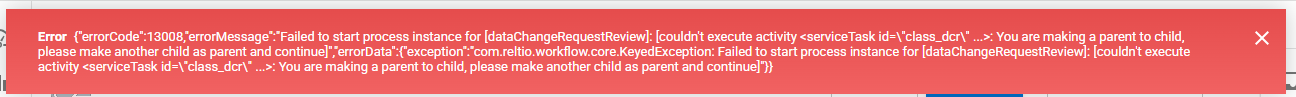 How can I only keep the actual error which is "You are making a parent to child, please make another child as parent and continue" and remove remaining content, which improves the readability for the user.